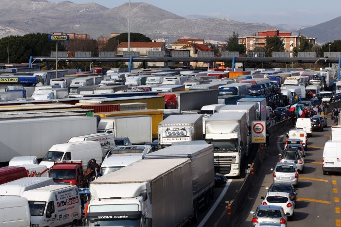CANADIAN TRUCKERS AGAINST COVID MANDATES BLOCK ALL LANES OF TRAFFIC TO AND FROM THE UNITED STATES